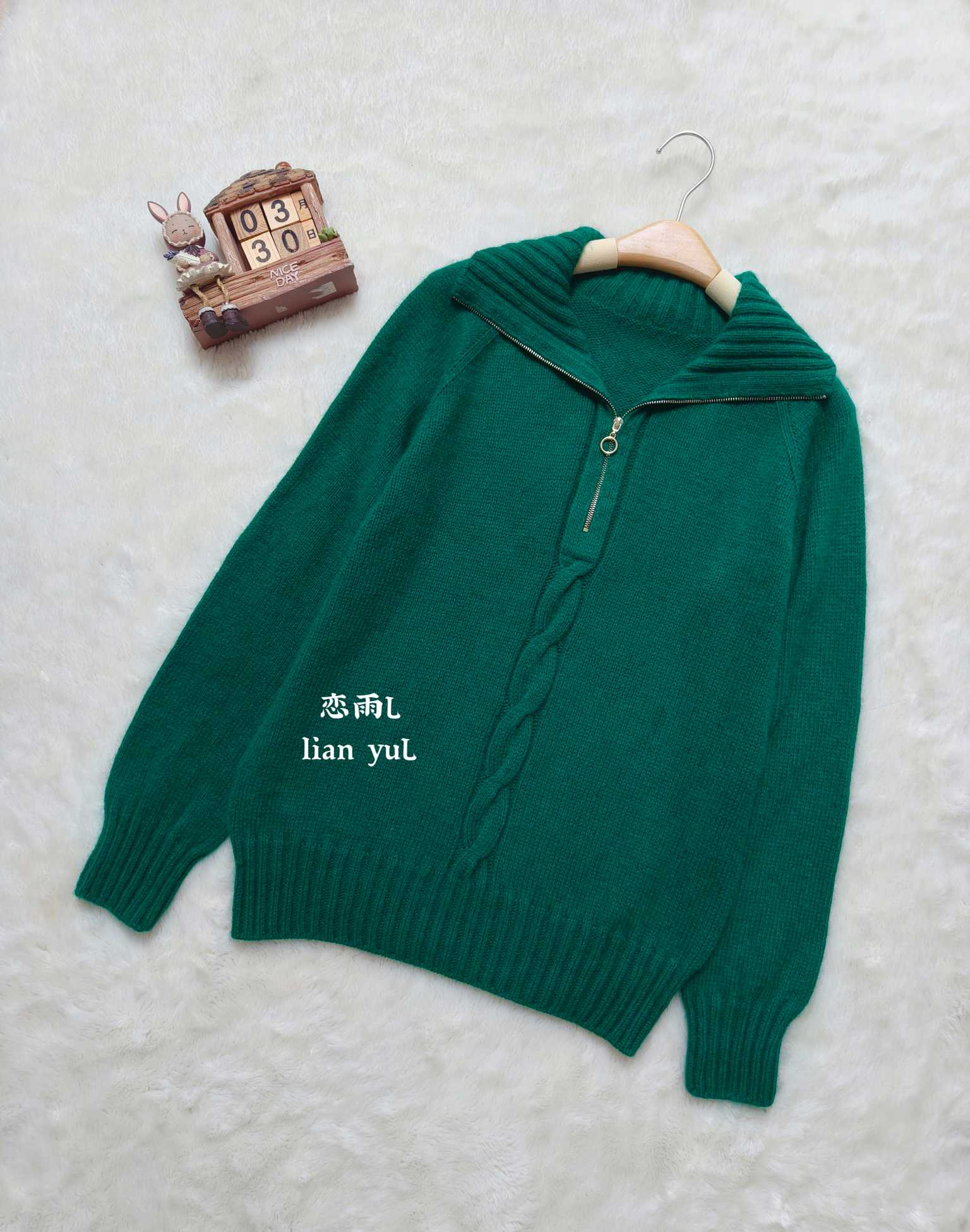 7、恋雨l~正绿色翻领毛衣